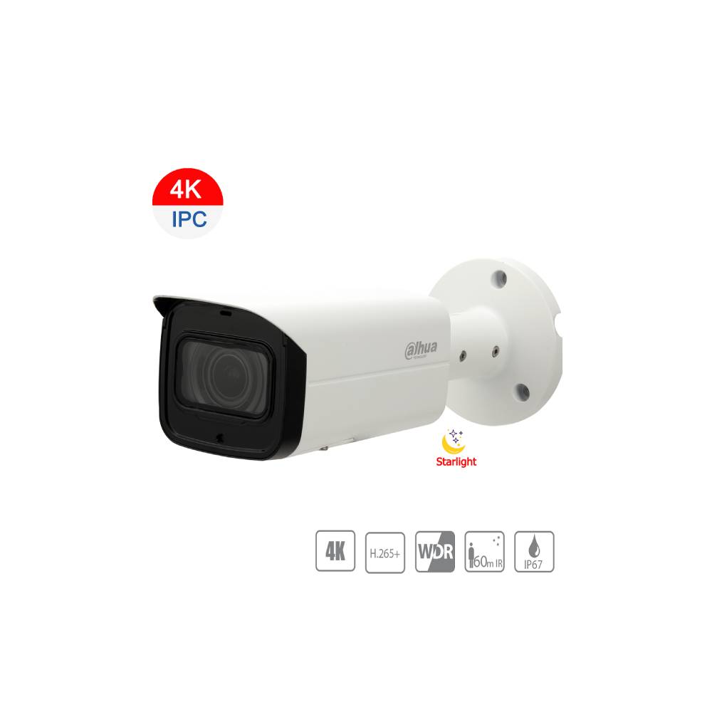 Dahua 8MP (4K) Starlight H.265+ IP Bullet Motorized Lens 3.7~11mm, Day/Night ICR, True WDR(120dB), IR 60m, IVS, Micro SD,IP67, DC12V, <14.3W, POE (Optional: Junction box PFA135, Pole Mount: PFA152-E)